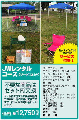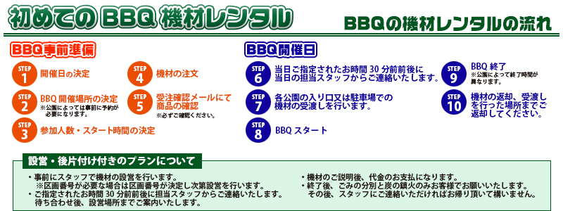 バーベキュー器材のレンタル・食材販売や組み立てもおまかせ! >> 全リストを見る。